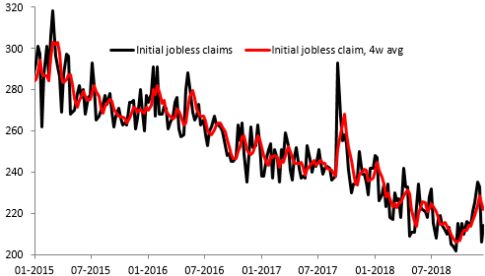 At the same time as the manufacturing data there was some slightly better news from the labour market with the weekly jobless claims coming in below the 216k expected at 214k. With a prior reading of 206k and considering the small nature of the beat this isn’t really too positive on the whole however. The US labour market continues to remain strong with the 4-week moving average not far from its lowest level in recent years.