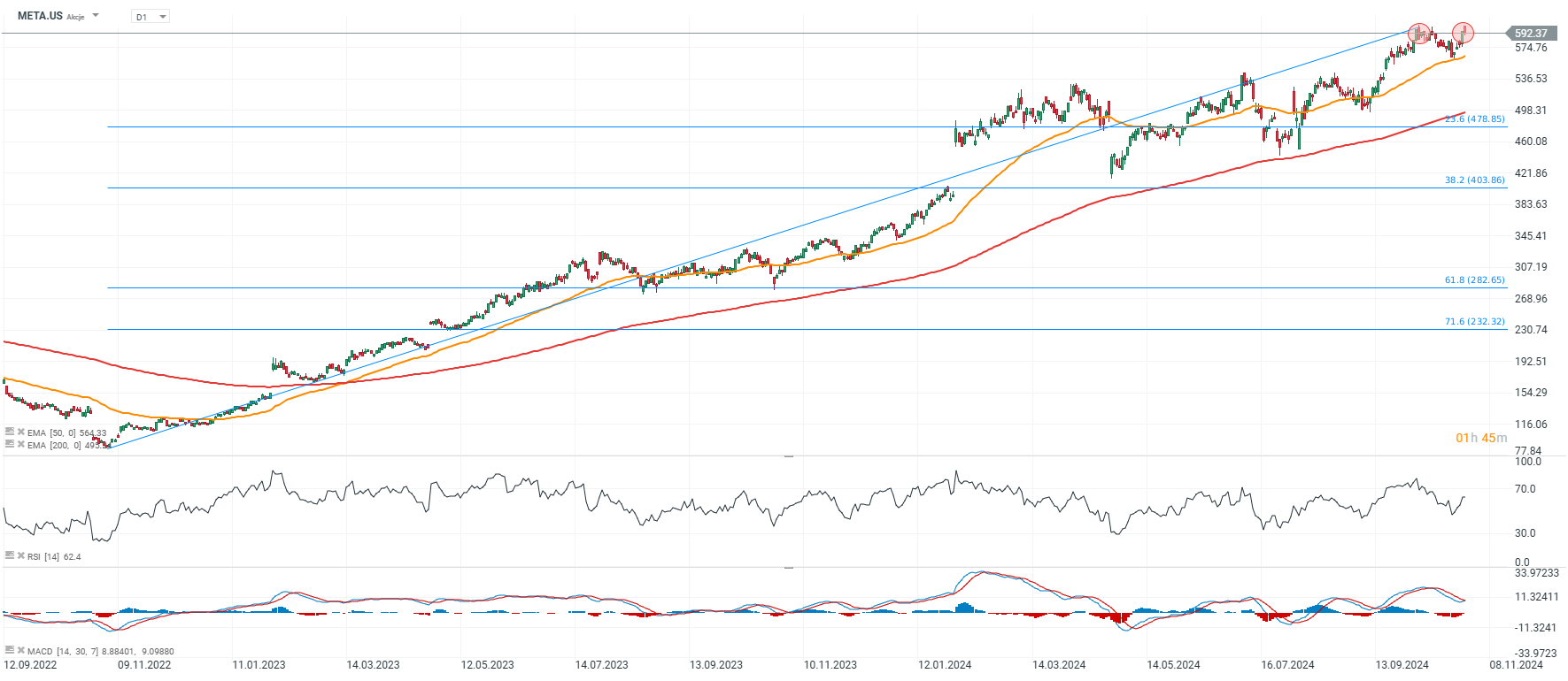 Meta is improving profitability and is certainly one of the companies where the impact of AI on real business is actually already visible. It is worth noting the rather dynamic for the scale of the business growth of Family of Apps users (Facebook, Instagram, WhattsAp, Reels, etc.), who ultimately serve the company as a base for monetizing the business. In Q3, we saw very dynamic earnings growth. The stated both the larger CAPEX (good for companies - AI infrastructure providers like Arista Networks) and the 'aggressiveness' with which the company is burning through money in the 'Metaverse' (VR) business suggest that it sees no short-term risks to the business and expects continued positive growth.