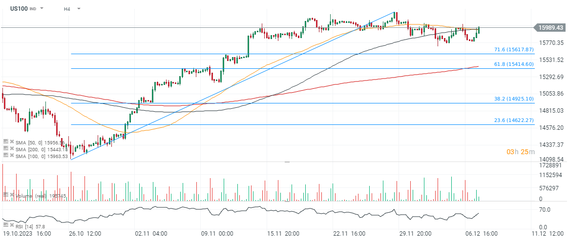 US100 chart (H4, H1)