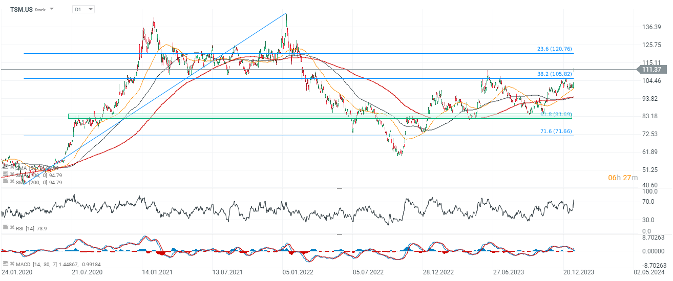 - Markets expect that not only AI but also cyclicality may support semiconductor producers in a new year. We can see huge gains among AMD (AMD.US), Nvidia (NVDA.US) or Marvell Technology (MRVL.US) but the strongest gainer today is TSM with stocks rising more than 8%