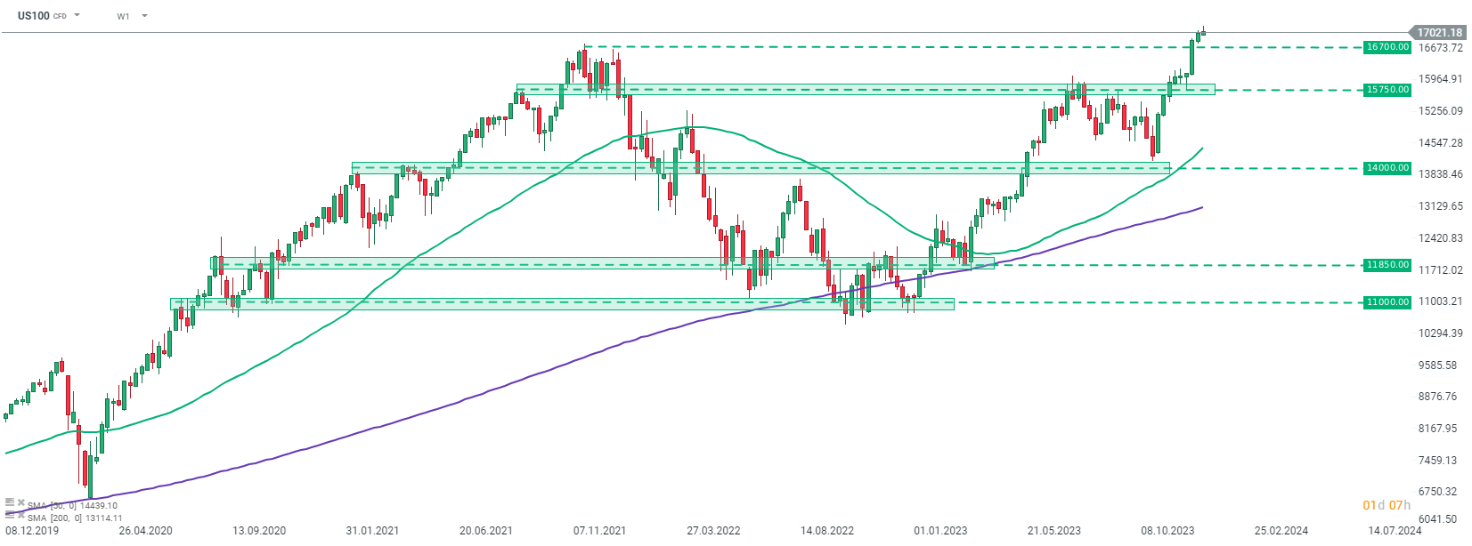 Nasdaq-100 futures (US100) pulled back slightly from fresh all-time highs reached earlier this week but continue to trade above 17,000 pts mark. Source: xStation5