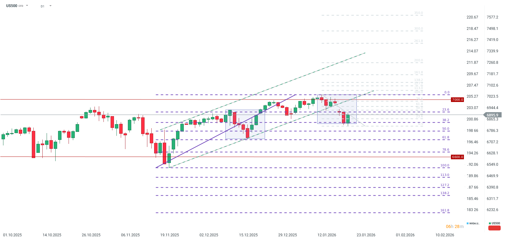 The US500 contract, tracking the S&P 500, gained approximately 1% in early trading. While the move initially mirrored the rally seen on December 19, the momentum quickly accelerated, marking the index's strongest daily performance since November. Market observers have noted that the current price action bears a striking resemblance to the October "V-shaped" recovery; following a sharp 2% pullback, the index established a local bottom before embarking on a sustained march toward fresh record highs.