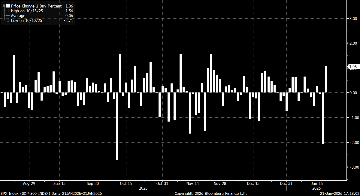 S&P 500 daily changes. Source: Bloomberg Finance LP