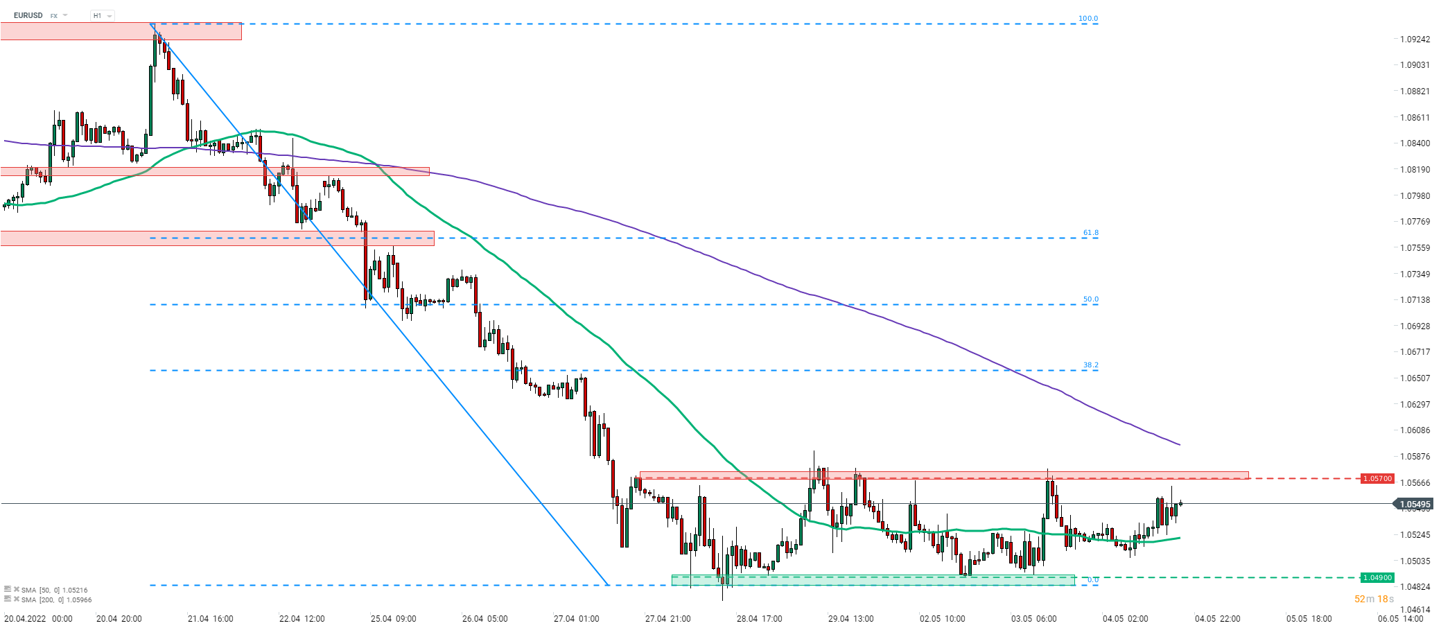 The US dollar is trading lower against the majority of G10 peers less than an hour ahead of the key FOMC decision (7:00 pm BST). Market consensus calls for a 50 basis point rate hike - the first Fed rate hike of such magnitude since the dot-com bubble. Such a move was well communicated by a bulk of Fed members and surprise looks unlikely. However, because of that any surprise may be a big volatility trigger for USD as well as US indices. Apart from delivering a big rate hike, FOMC is also expected to announce the launch of quantitative tightening. In this case attention will be paid to details, like pace of balance sheet run-off.