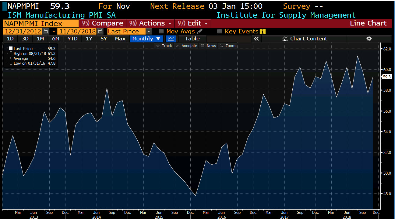 The main data releases today have centred on the manufacturing sector with the latest figures from the US topping estimates. For the month of November the ISM index from the US rose to 59.3 vs 57.5 expected with the past print 57.7. The rebound see the gauge return to around the middle of the level seen in the past 18 months after it was threatening to push lower in October.