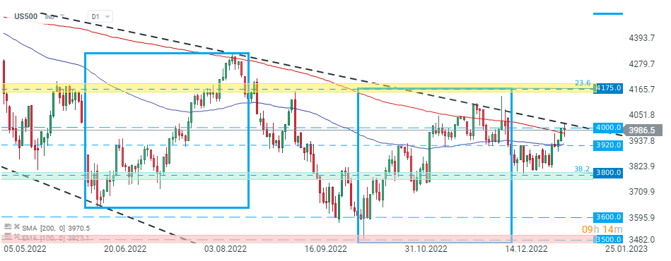 US500 bounced off key resistance at 4000 pts after CPI data release. Nearest support to watch lies at 3900 pts. Source: xStation5