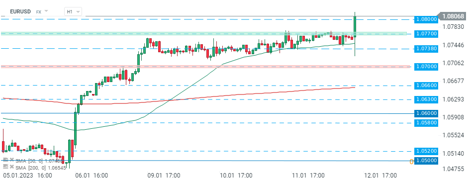 EURUSD pair bounced off local support at 1.0738 and resumed an upward move. Most popular currency pair is currently trading above major resistance at 1.0800. Source: Station5
