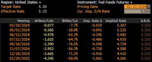 The probability of a rate cut in May has fallen to 29% (before the reading it was close to 50%), and the market is now forecasting close to 3-4 rate cuts this year. Source: Bloomberg Financial LP