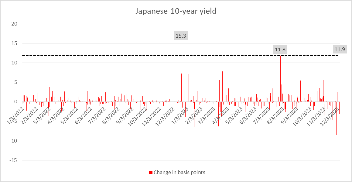 10-year Japanese yield experiences the biggest single-day jump since December 20, 2022. Source: Bloomberg Finance LP, XTB
