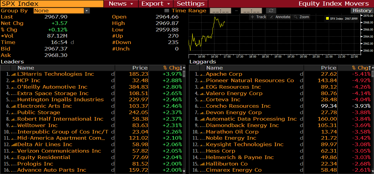 S&P 500 movers at 3:54 pm BST. Source: Bloomberg