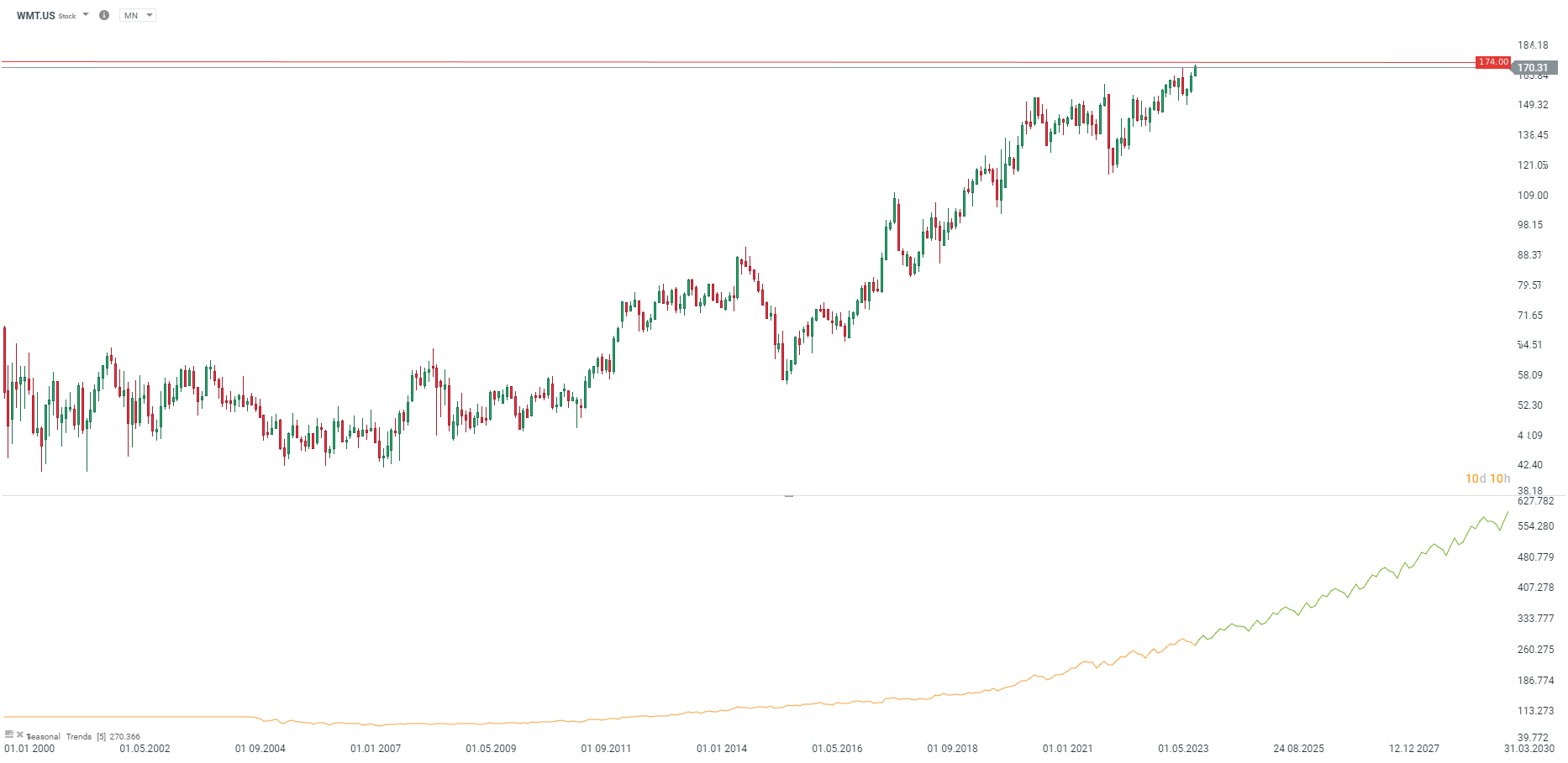 Walmart is up more than 2% in pre-market session and it will probably reach new all-time high in the first trading session in the week. Source: xStation5