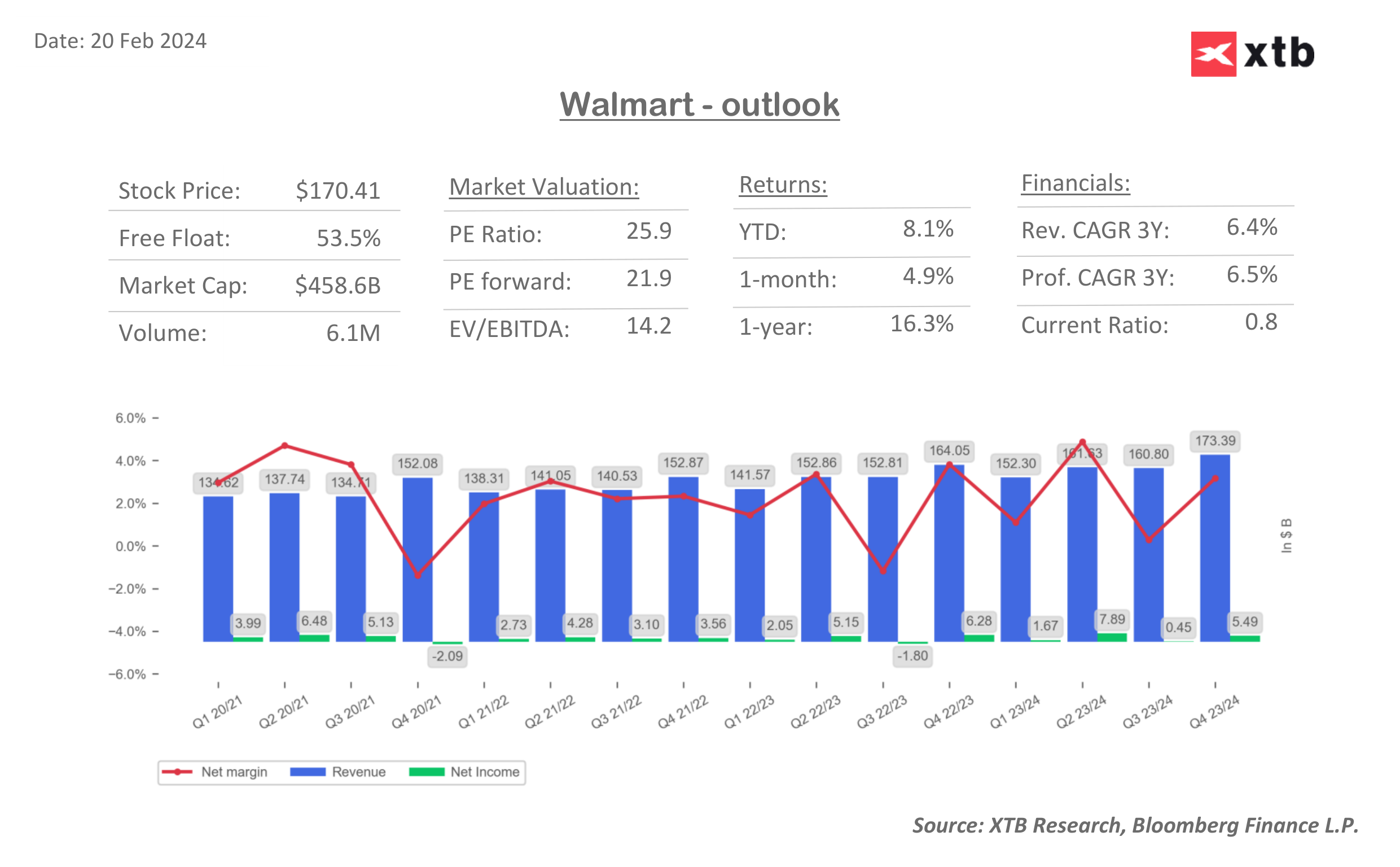 CEO Doug McMillon expressed optimism about the results, highlighting surpassing the $100 billion mark in e-commerce sales and gaining market share due to improved customer experience metrics. Market analysts responded positively, raising their recommendations for Walmart shares. Bloomberg said that Walmart results were good and raised forecast for the fiscal year 2025 expresses strong position for the company on the market. It's crucial to note that these results were achieved during a period of high inflation and rising interest rates. This demonstrates Walmart's business resilience and its ability to adapt to changing market conditions. Investors should closely monitor Walmart's further actions, including its progress in e-commerce and its international expansion plans.