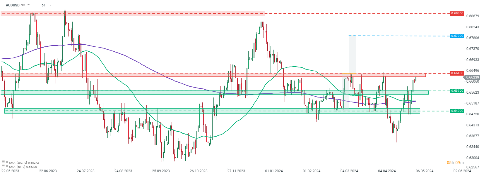 Money markets expects RBA to keep rates unchanged tomorrow and in the remainder of 2024. Source: Bloomberg Finance LP, XTB Research