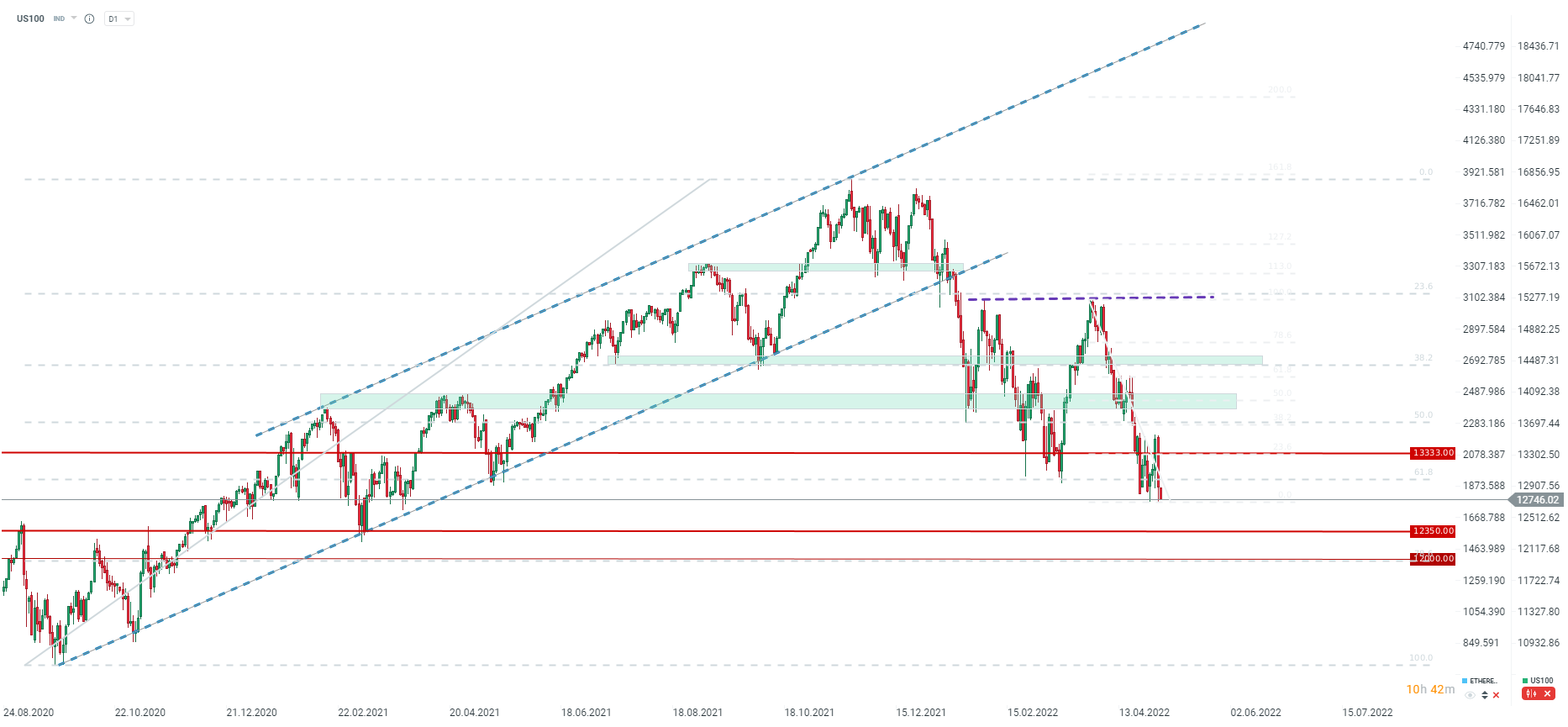 The US100 has tested the latest local lows around 12,750 pts. This level also acted as support in Q1 of 2021. Any signal of weakening inflationary pressure should be positive for indices. On the other hand, a potential fall in employment would signal a potential weakness of the labor market. It seems, however, that it is too early for the labor market to react to interest rate hikes. Source: xStation5