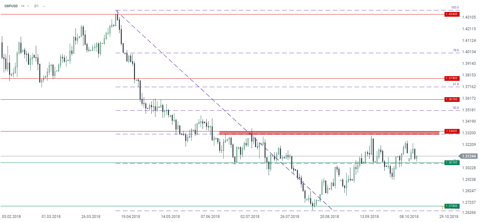 The GBPUSD slid on Wednesday but the pair has recovered some its losses since then. Assuming that the pair will be able to stay above 1.3070 one may count on a pick-up toward 1.3340. However, any more impressive gains seem to be unlikely until the Brexit thread is resolved altogether. Source: xStation5