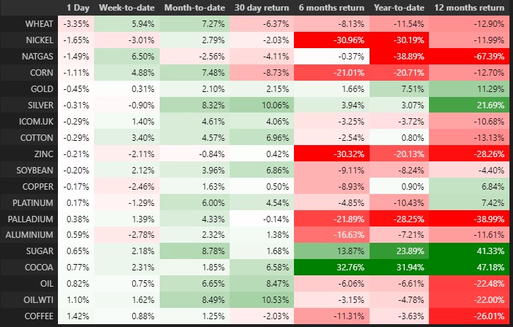 Wheat is the worst performing commodity today. On the other hand, besides gas, it is still the strongest commodity this week. Source: XTB