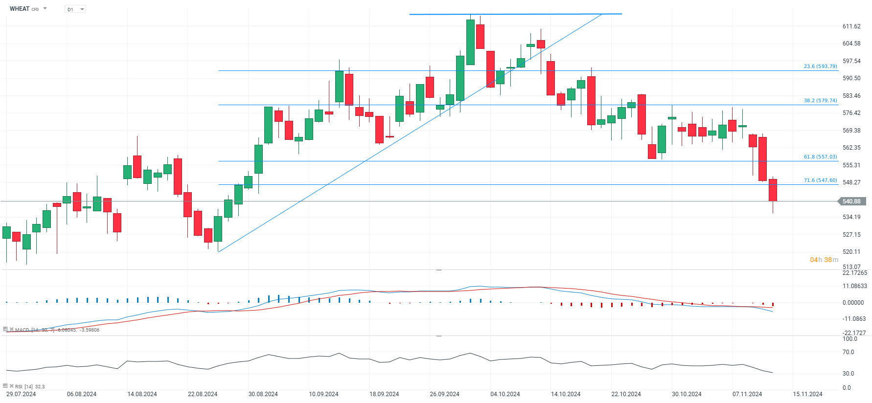 CBOT wheat futures loses almost 1.5% today, dropping to $540 ahead of tomorrow rollover, pressured by strong US dollar.