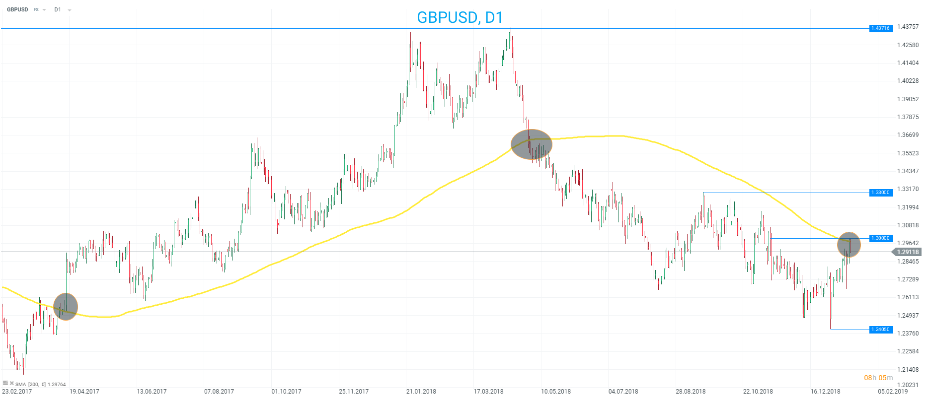 The GBPUSD has returned to its 200 day simple moving average in recent trade for the first time since April last year. This indicator has proved fairly adept at identifying the long term trend of the market in recent years, with an uptrend in place when price is above it and a downtrend when the market is below it. A move back above 1.30 would see price trade above the 220 SMA once more and could be seen as the start of a longer term uptrend. Source: xStation