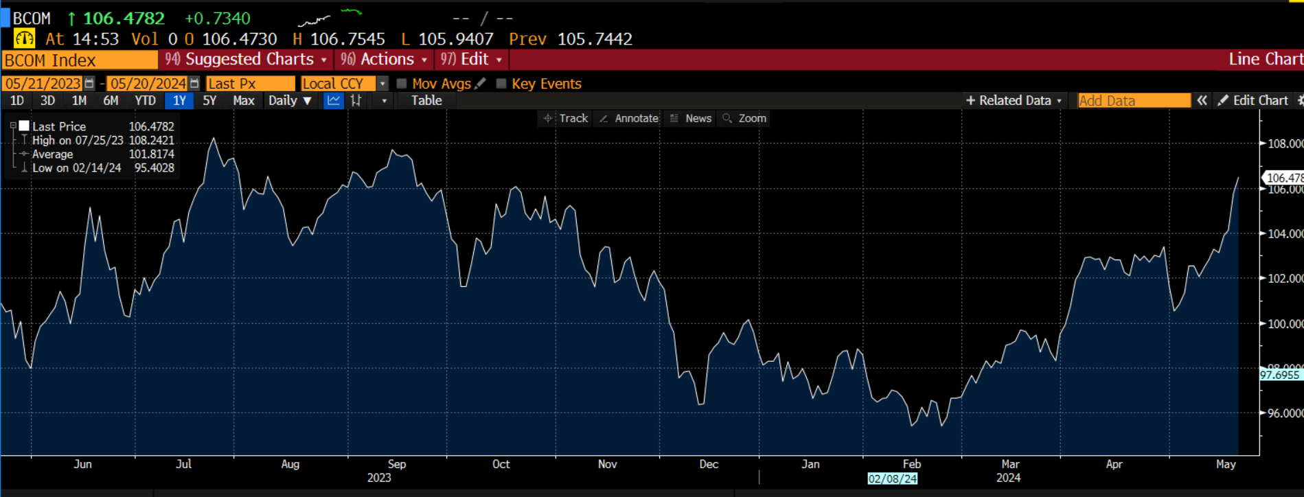 Overall, there are some who are worried that the Bloomberg Commodity Price Index, which is back at its highest level since September, could threaten the disinflation trend that we have witnessed around the world. While rising commodity prices can cause havoc with global inflation rates, we would argue that they are just one contribution to CPI indices. As commodity prices are rising, other aspects of inflation are falling, for example wages. While household energy bills are the largest weighting in the UK headline CPI basket, central bankers tend to prefer to look at the price of core inflation when setting policy, which strips out the effects of volatile commodity prices. Thus, for now, we believe that the surge in commodity prices does not derail prospects of rate cuts from the major central banks later this year.