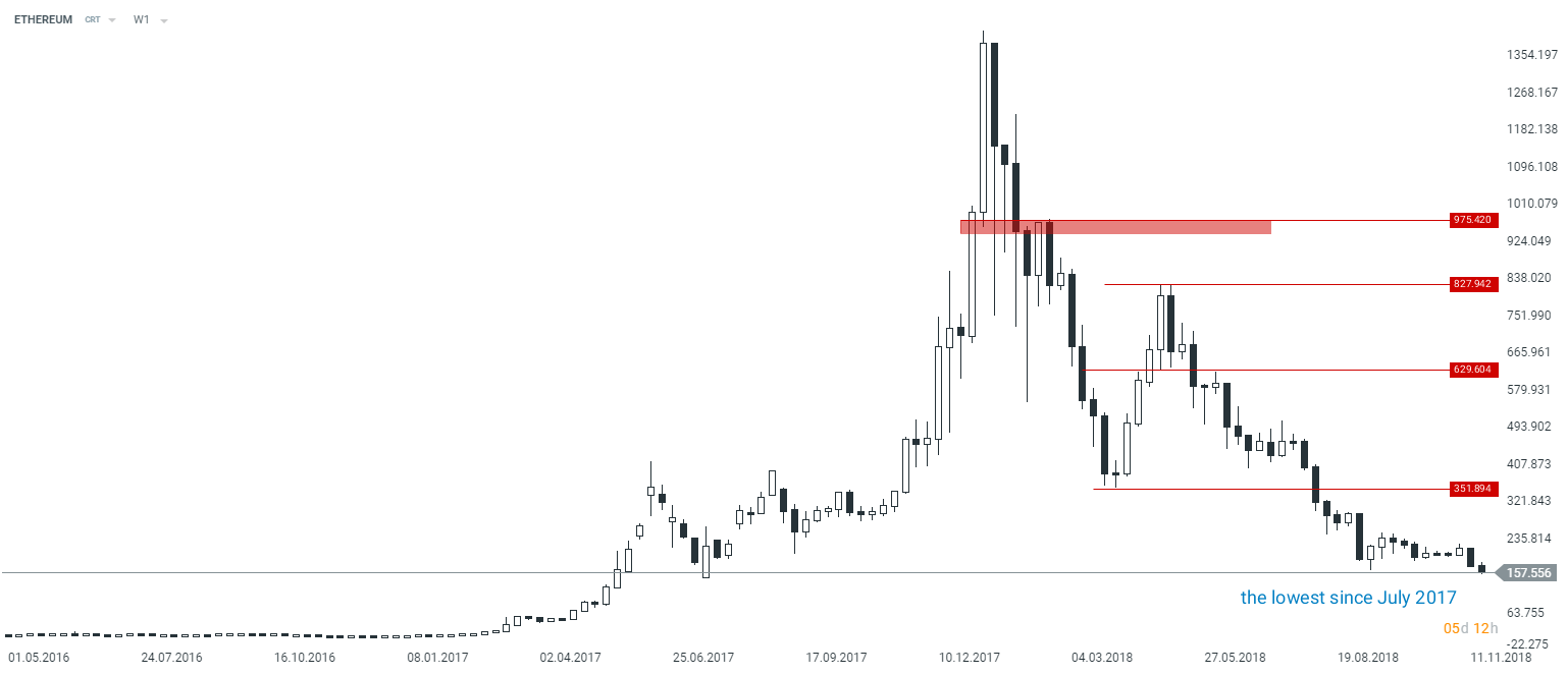 ETHEREUM has reached one of the worst results among major cryptocurrencies today so far. The virtual currency has dropped around 12% since the midnight. Source: xStation5