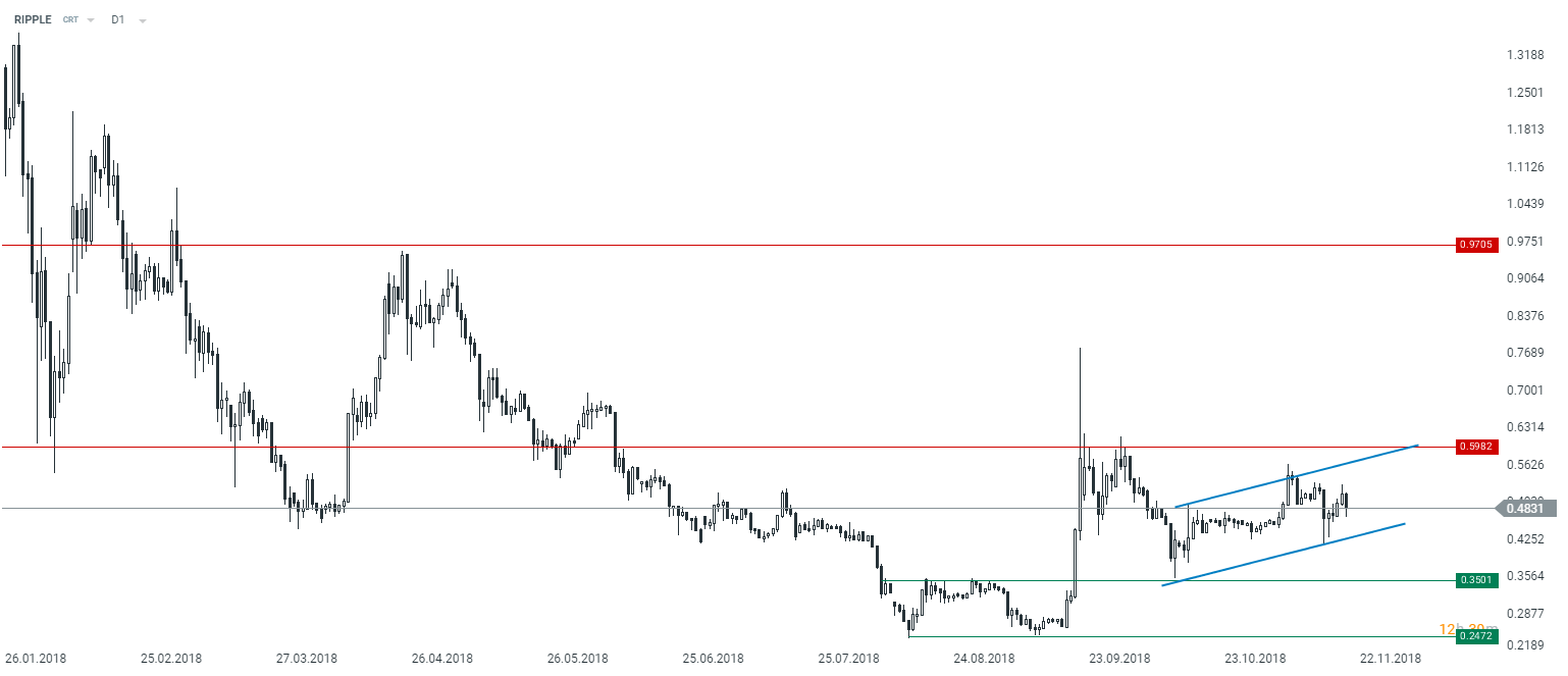 RIPPLE, like its other peers, has experienced some losses, but their scale seems to be moderate in comparison to falls seen in Ethereum and BitcoinCash. The cryptocurrency has dropped around 6.5% as of yet. Source: xStation5