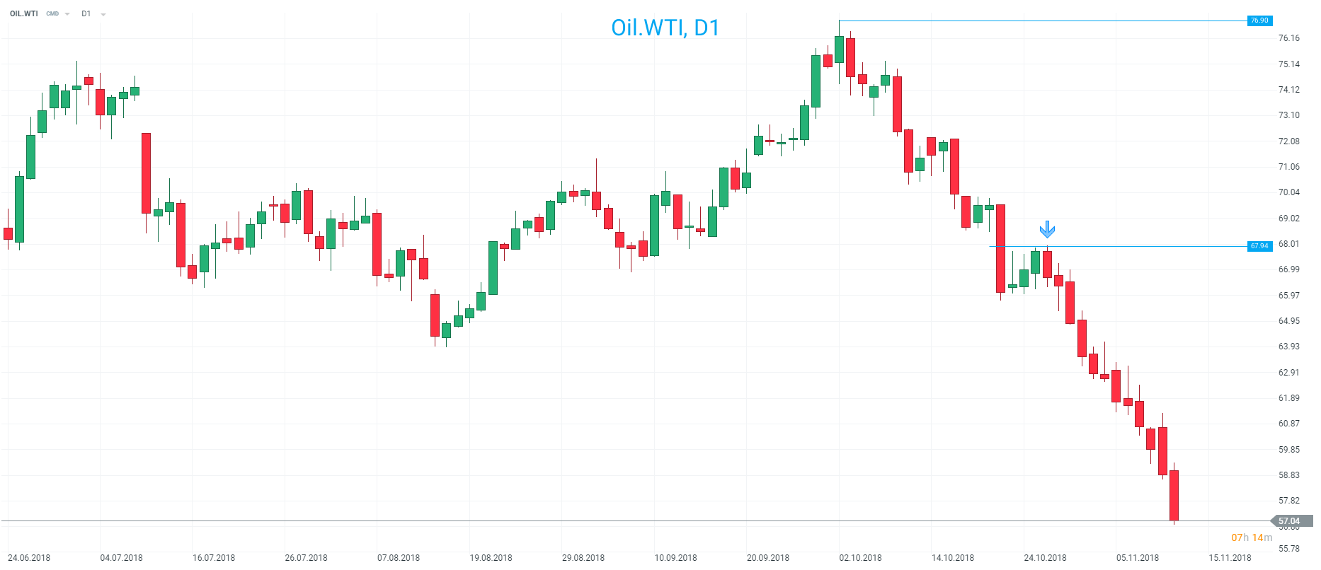 WTI falls below $58 a barrel to lowest level of the year
