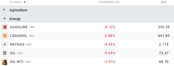 Significant declines can be spotted all across the energy commodity market today. Source: xStation5