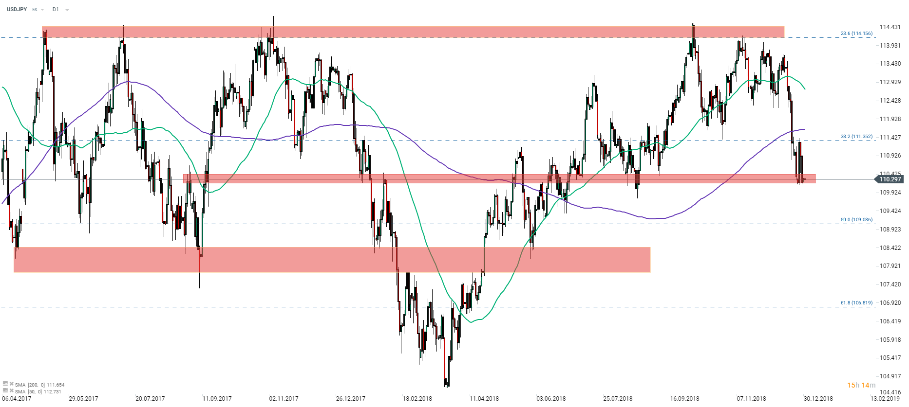 However, light volumes do not mean that there are no news one could trade on. Just as we are entering the new year Donald Trump has struck an upbeat tone relating China-US trade talks. Namely, the US President announced via Twitter on Saturday that he and the Chinese President Xi held a long conversation and both agreed that progress is being made in trade negotiations. While no details have been presented, such a remark is definitely reason to cheer given how much Trade Wars have disturbed 2018. In turn we are observing the Japanese yen and the Swiss franc weakening against most of their major peers. Nevertheless, one should keep in mind that the tweet could be just a move aimed at boosting moods ahead of 2019, the year that will be crucial for the US-China relationship.