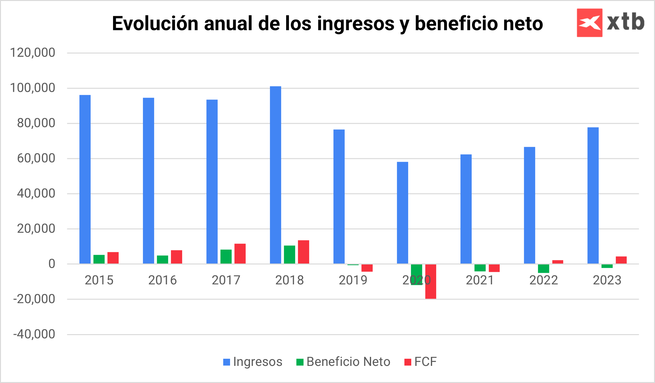 Los esfuerzos de la empresa se están concentrando en solucionar finalmente el problema del 737 MAX. Lo cierto es que las perspectivas son buenas, pese a que se enfrenta claros desafíos. Tras varios de pérdidas, estimamos que en este 2024 la compañía vuelva a la senda de los beneficios. De hecho, ha conseguido generar flujo de caja libre positivo en los últimos dos años, lo que es una buena señal.