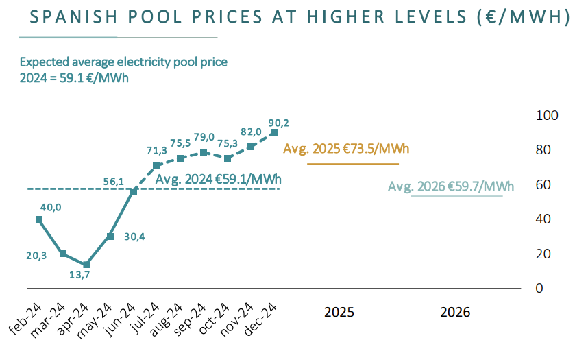 La compañía ha reportado unos resultados que son malos si lo comparamos con el mismo periodo del año pasado, pero las perspectivas para lo que queda de año son buenas. En concreto, el principal problema es el precio de la electricidad, el cual se ha establecido en niveles bajos durante todo lo que llevamos de 2024. Sin embargo, la compañía está apuntando a una recuperación de la demanda que provocará un aumento del precio medio. Esto dejaría un buen 2025, aunque en 2026 el precio volvería a estabilizarse.