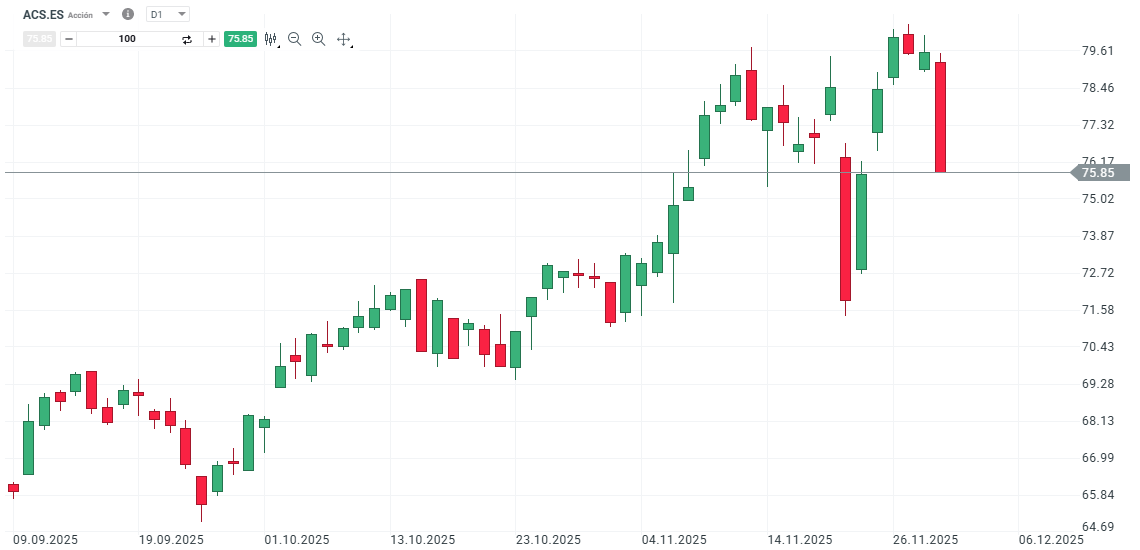 El impacto bursátil a largo plazo de esta adjudicación dependerá de los márgenes de ejecución y del cumplimiento de los plazos de este proyecto que los accionistas de la constructora valoran como clave para la expansión en los sectores de ingeniería civil y transporte marítimo en Reino Unido. En lo que va de sesión las acciones de ACS caen un 5,4% mientras que durante 2025 el grupo presidido por Florentino Pérez se revaloriza un 56%.
