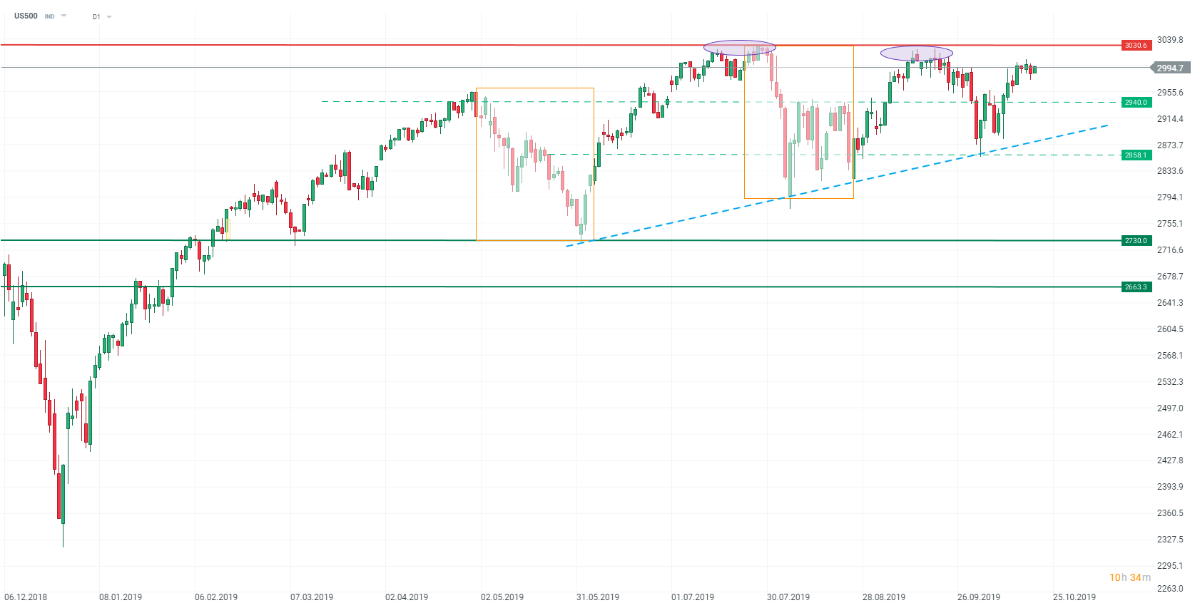 US500 permanece cerca de los máximos históricos. ¿Los informes macroeconómicos justificarán estos niveles? Fuente: xStation5