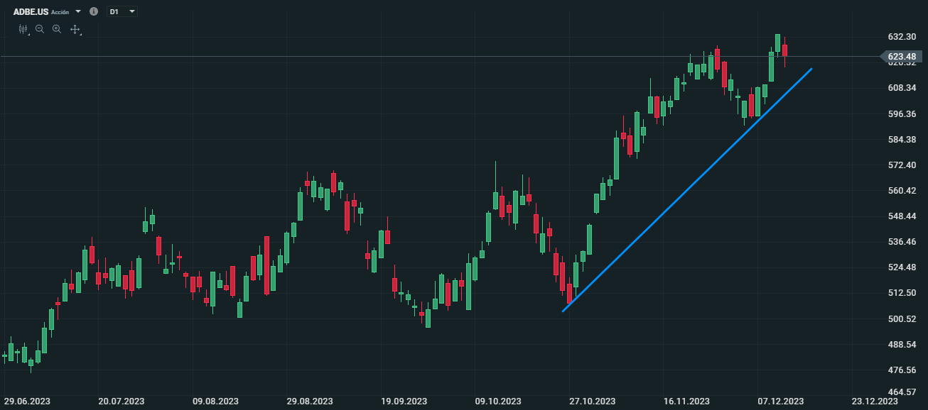 Adobe (ADBE.US) no revierte su fuerte tendencia alcista que acumula en este último trimestre del año a pesar de las malas noticias recientes. El grupo digital ha informado de una perspectiva más débil para el próximo año. Además, confirmó que está siendo investigada por el gobierno de Estados Unidos por sus prácticas de suscripción de clientes.