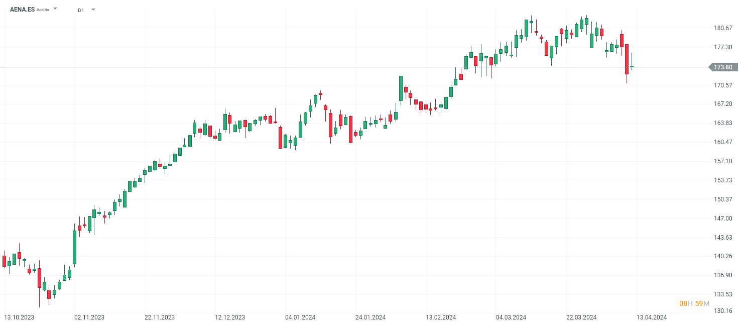 Las acciones de Aena suben un 6,7% en lo que va de 2024.