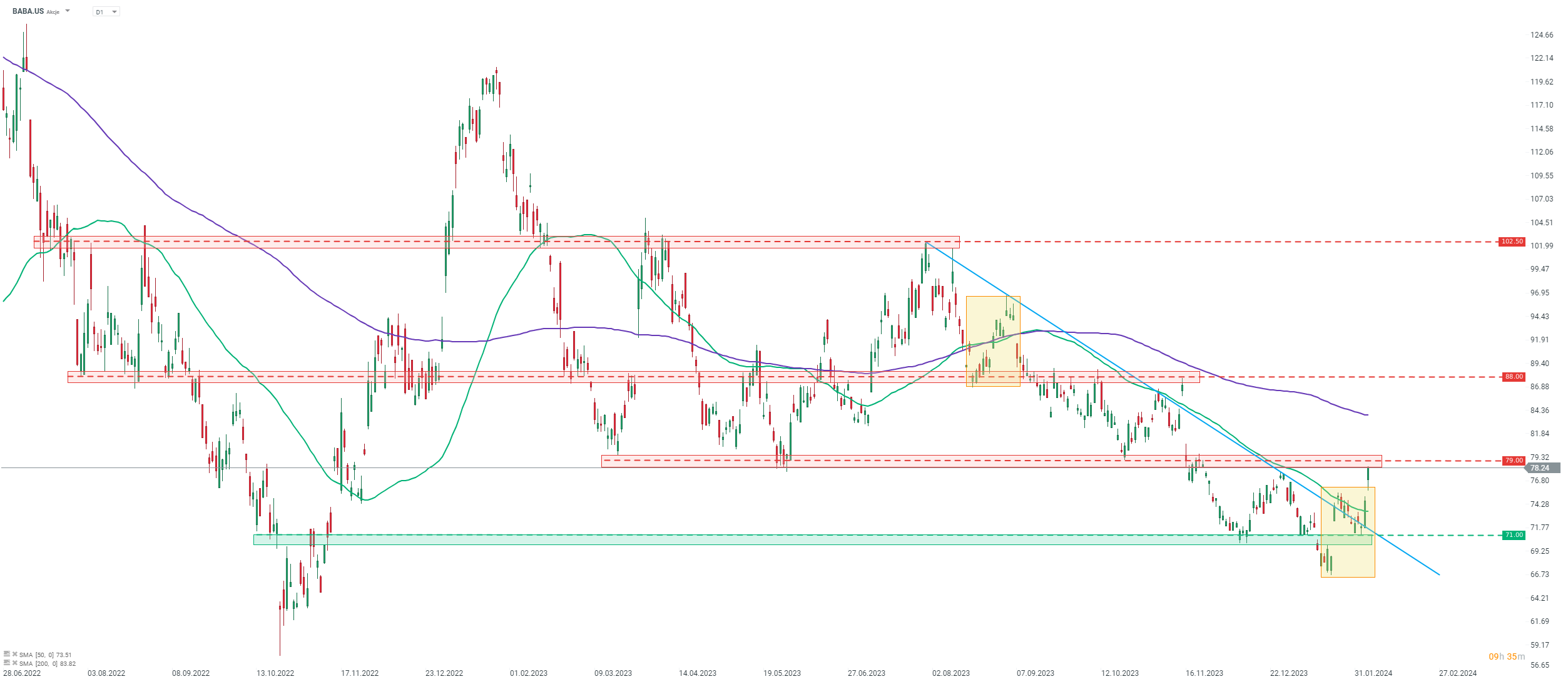 Las acciones de Alibaba Group que cotizan en EE. UU. (BABA.US) caen un 4% en el premarket tras la publicación del informe de resultados del tercer trimestre fiscal de 2024 (calendario del cuarto trimestre de 2023). Si bien las acciones inicialmente subieron alrededor del 5% en las primeras operaciones del premercado, esos beneficios se borraron. ¡Echemos un vistazo!