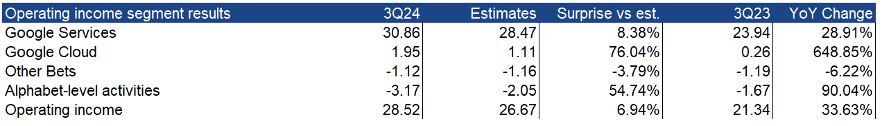 Alphabet se enfrentó a un desafío muy difícil dadas las altas expectativas establecidas por el mercado. Sin embargo, la compañía logró informar sólidos resultados para el tercer trimestre, superando las previsiones de consenso del mercado en áreas clave, manteniendo así una sólida dinámica de crecimiento de los ingresos. El segmento de la nube, en particular, brindó una sorpresa positiva y sigue siendo el componente más seguido de cerca de los ingresos de la compañía. En las operaciones posteriores al cierre, las acciones de la compañía subieron más del 4% en la reacción inicial a los resultados.