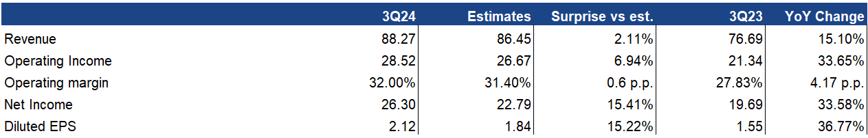 La compañía también mantuvo una excelente disciplina de costos, lo que resultó en un aumento interanual del 33,7% en el beneficio operativo hasta los 28.520 millones de dólares (en comparación con los 26.670 millones de dólares del año anterior). Esto se tradujo en un margen operativo récord del 32%. Esto marca el tercer trimestre consecutivo en el que la compañía mantiene un margen operativo por encima del 30%.