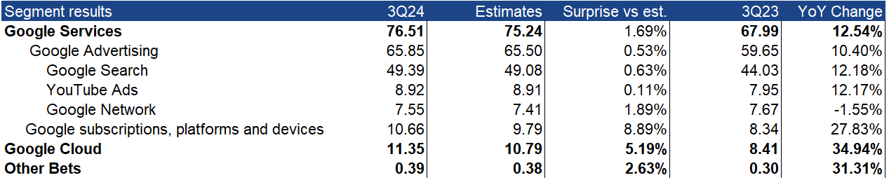 La compañía logró $ 88,27 mil millones en ingresos, lo que representa una tasa de crecimiento del 15,1% y un 2,11% más de lo previsto. Incluso después de ajustar los pagos a los socios que dirigen a los clientes al entorno de Google, los ingresos se mantuvieron sólidos en $ 74,6 mil millones (en comparación con los $ 72,9 mil millones previstos).