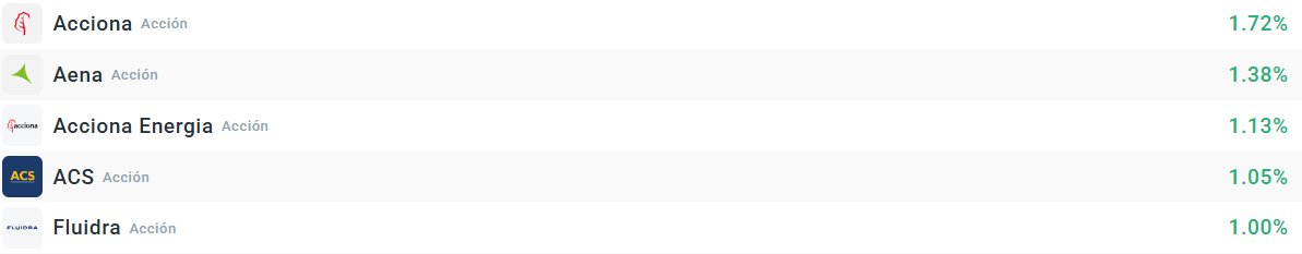 La parte alta del Ibex35 está copada por las acciones de Acciona y Acciona Energía. Estas acciones se suelen mover al unísono, ya que Acciona tiene más del 80% de Acciona Energía. Aena también ha empezado bien, pero la que nos gustaría destacar es Fluidra, que encara un 2025 que podría ser bueno debido a la fortaleza de la economía americana, su principal mercado.