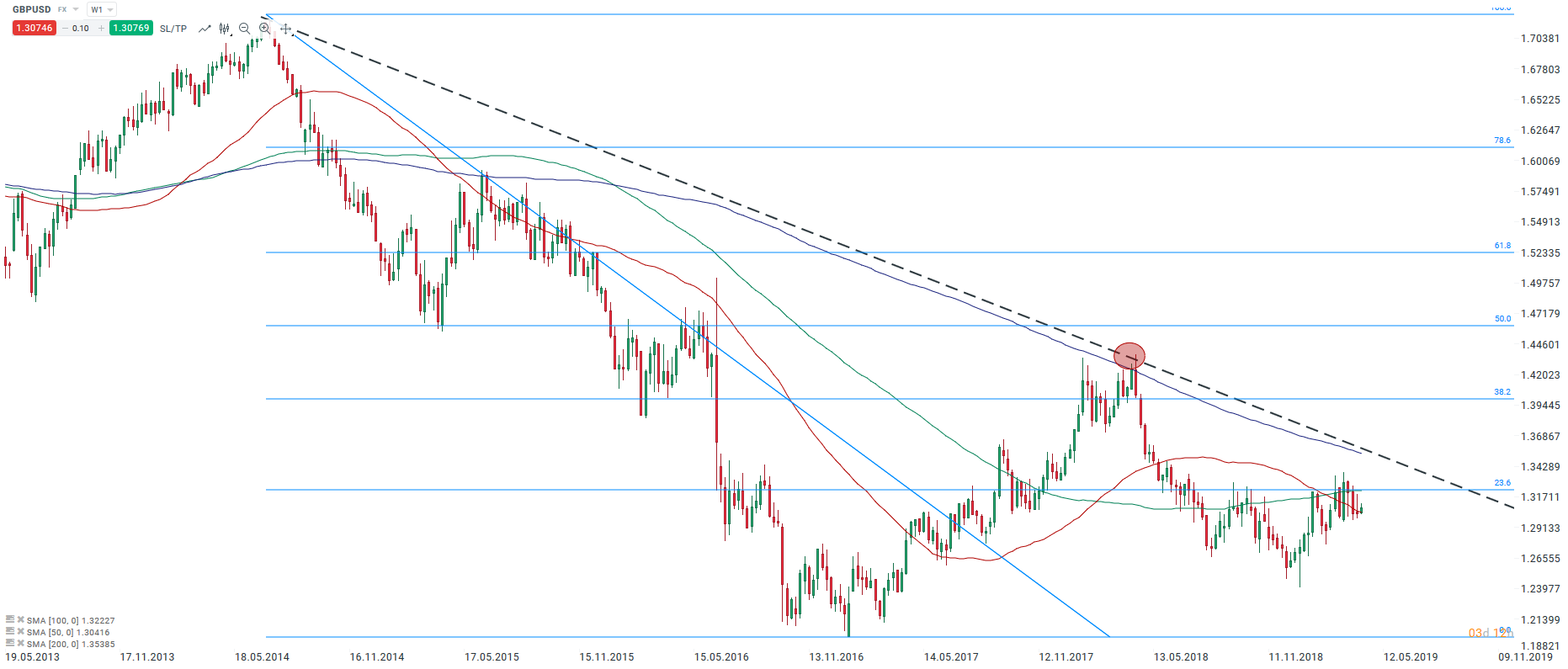 La cumbre de la UE se lleva a cabo hoy y el Brexit será un tema importante. Algunas revelaciones sugieren que la UE propondrá una extensión de plazo más larga (tal vez incluso hasta marzo de 2020) que podría aumentar la libra en el corto plazo. Tenga en cuenta que el GBPUSD ha estado operando por debajo de 1.33 (la resistencia técnica importante) durante algún tiempo. Este nivel también está respaldado por el retroceso del 23.6% del movimiento descendente más grande. El próximo nivel al que pueden apuntar los alcistas se puede encontrar en alrededor de 1.36; la media móvil ponderada de 200 es compatible con esta línea.