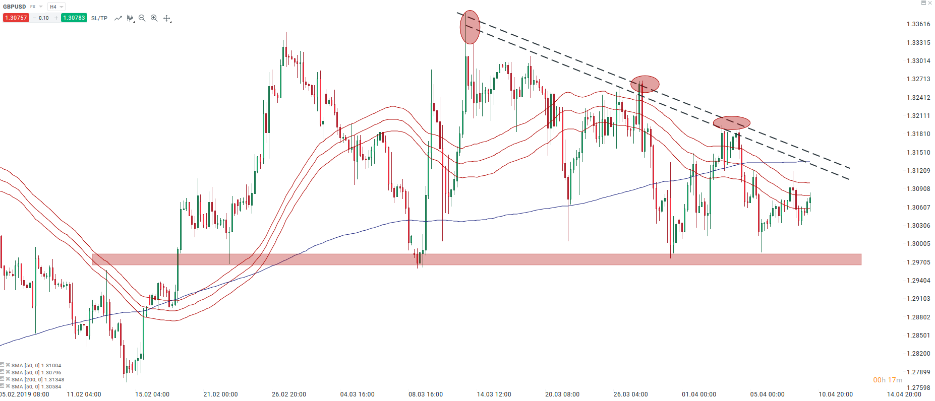 Mirando el gráfico H4, uno puede notar que la consolidación mencionada se ha ido reduciendo últimamente. Desde este punto de vista, 1.3130 podría constituir una fuerte resistencia a corto plazo donde la línea de tendencia descendente podría localizarse. La media de 200 períodos también se coloca alrededor de este nivel.