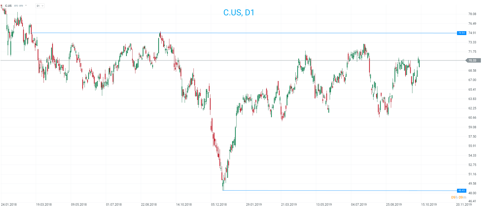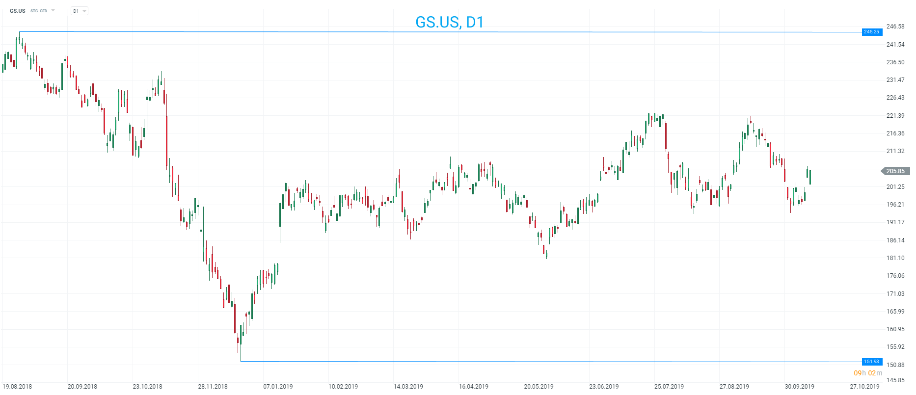 Otro gráfico que carece de una tendencia clara a largo plazo en los últimos tiempos es Goldman Sachs, con acciones que comienzan a bajar en alrededor del 2%. Fuente: xStation