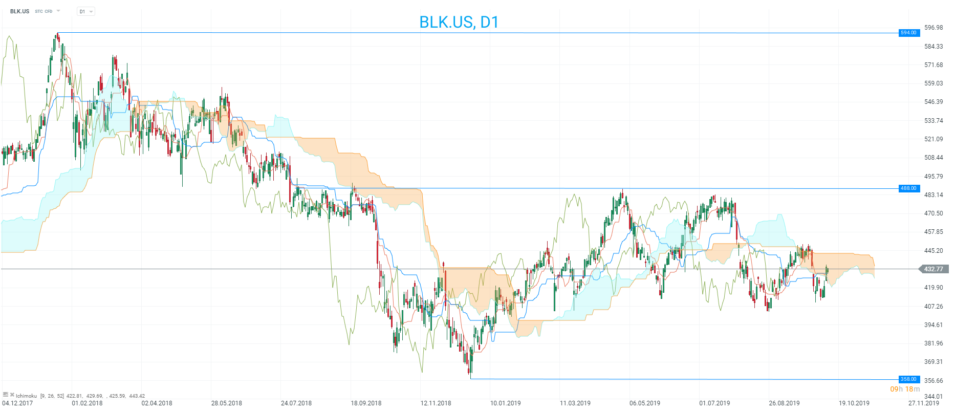 Las acciones de Blackrock están actualmente en la nube D1, pero si vuelve a estar por encima de 445 la perspectiva se vuelve más favorable: xStation