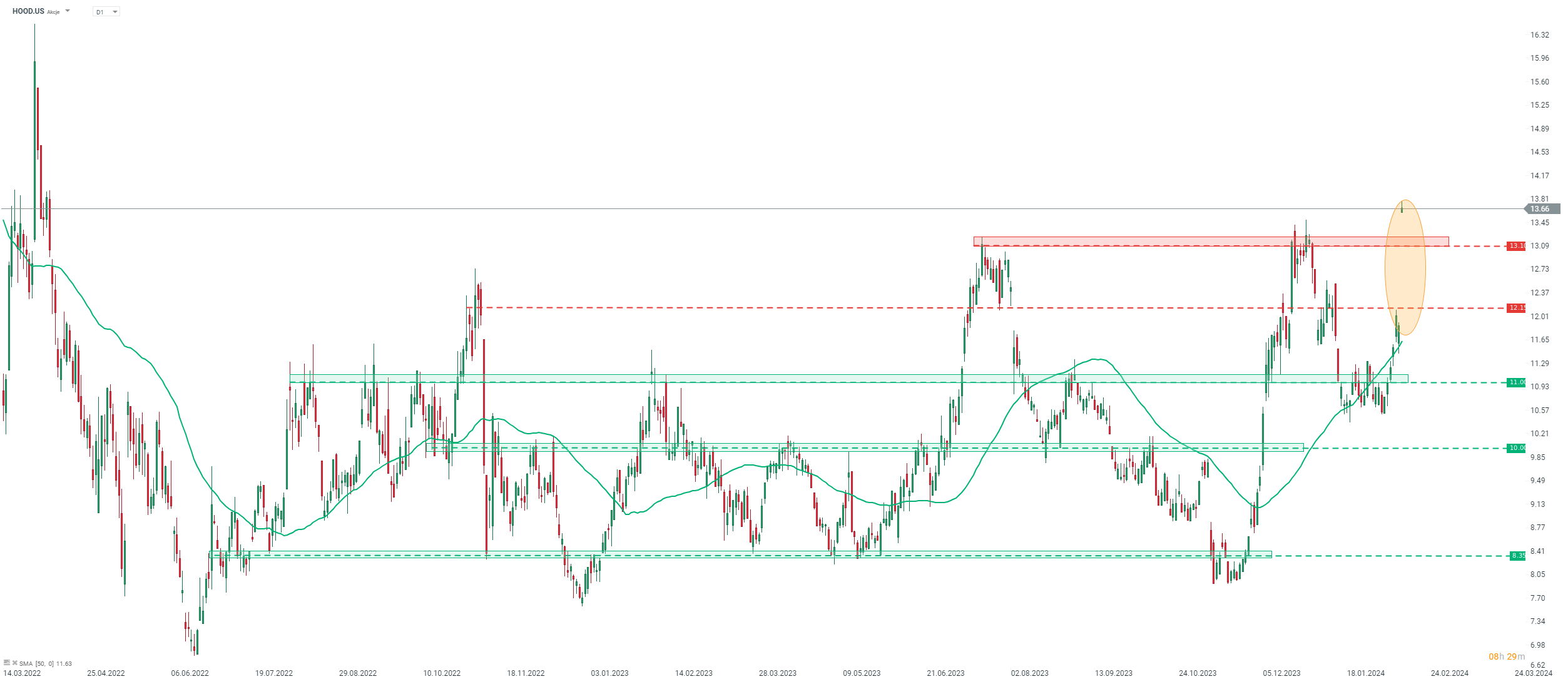 El precio de las acciones de Robinhood Markets (HOOD.US) sube tras la publicación de sus resultados del cuarto trimestre. Las acciones cotizan actualmente a su nivel más alto desde abril de 2022.
