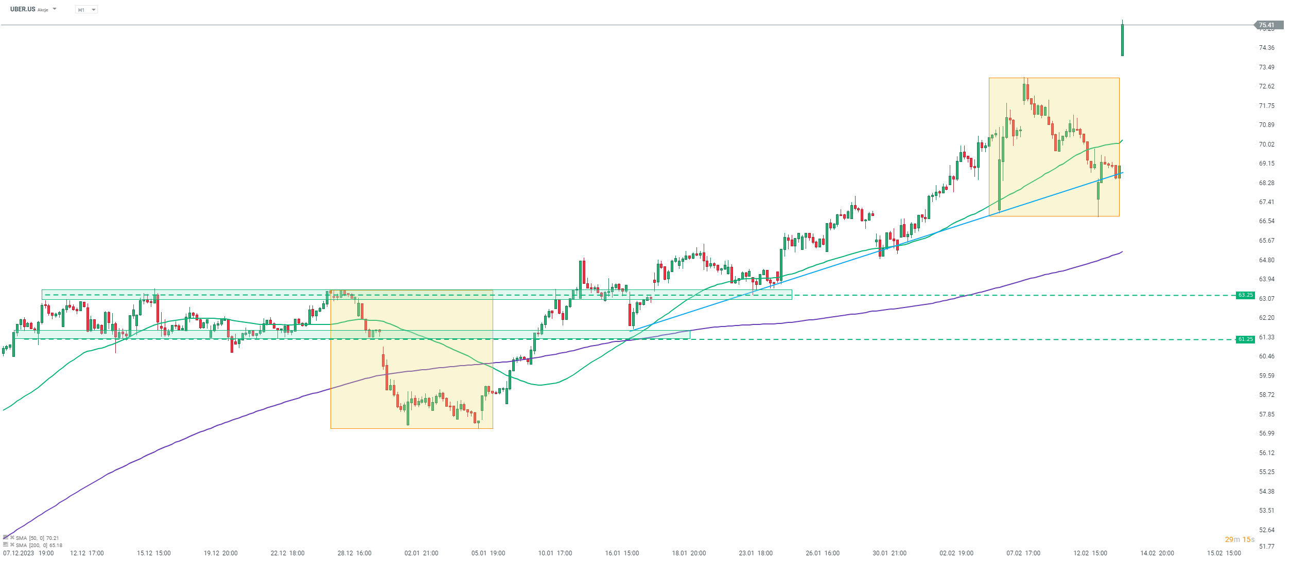 Uber (UBER.US) cotiza al alza tras anunciar el lanzamiento de un programa de recompra de acciones. La compañía autorizó recompras por valor de 7 mil millones de dólares, lo que supone casi el 5% del valor de mercado de Uber antes del anuncio. Esto se produce después de que la empresa lograra un beneficio operativo y un flujo de caja libre positivos en 2023.