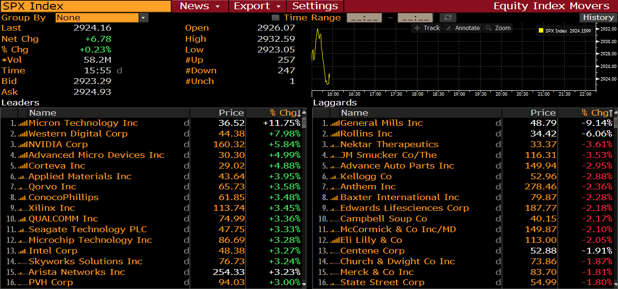 S&P 500 (US500) se mudó a las 2:55 pm BST. Fuente: Bloomberg