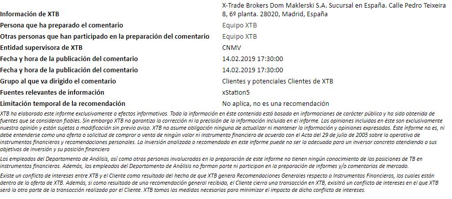 No se ofreció ningún avance a los inversores cuando se trata del tema de las guerras comerciales de hoy. Se confirmó la reunión del equipo de negociadores de Estados Unidos con el presidente chino, Xi Jinping, que se llevará a cabo el viernes. Aparte de eso, se dice que los negociadores todavía están muy alejadas en cuestiones clave que subyacen en el conflicto comercial en curso: la reforma de la economía china y el robo de propiedad intelectual. Sin embargo, una idea de extender el plazo arancelario del 1 de marzo por otros 60 días puede verse como un signo optimista. Más detalles se pueden encontrar aquí .
