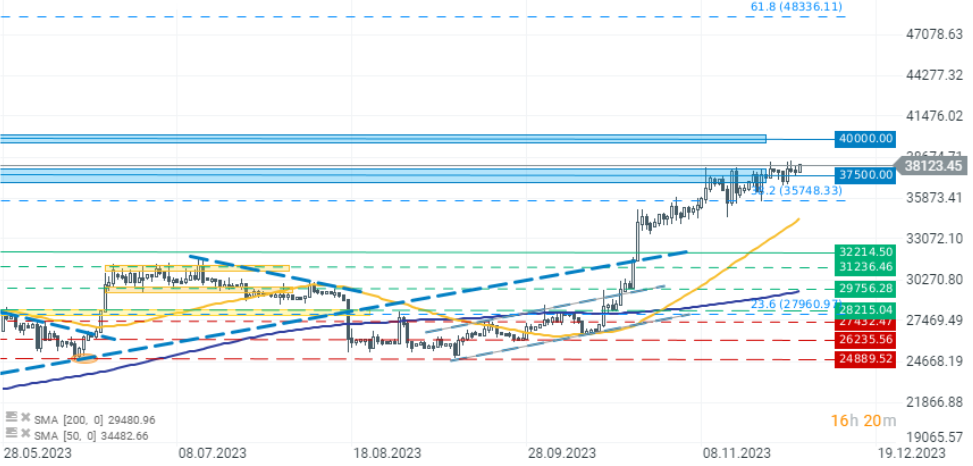 El Bitcoin está subiendo de nuevo en un intento de romper el límite superior del canal de consolidación actual de los 38.000$. Los aumentos están impulsados por las esperanzas de una posible próxima aprobación de las solicitudes por parte de la SEC.