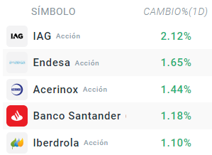 La aerolínea española IAG consigue recuperar el vuelo tras las últimas caídas, y lidera el arranque de la jornada. También vemos subidas en las utilities gracias a los resultados de Iberdrola, y Santander se cuela entre las primeras posiciones.