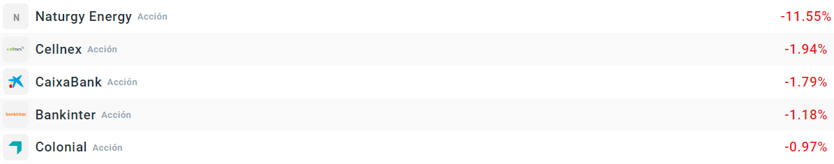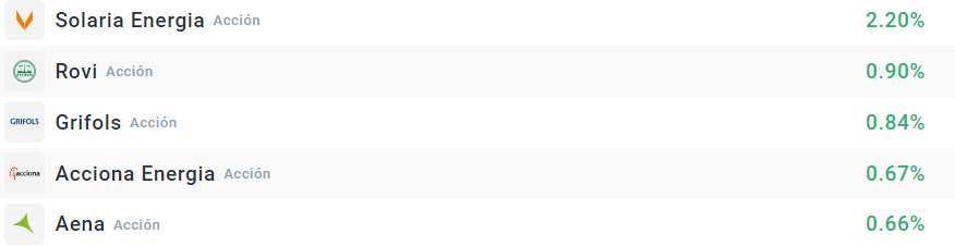 Solaria lidera las subidas de hoy y sigue con un movimiento volátil. La empresa tiene un alto apalancamiento en un sector cíclico, lo que hace que tenga importantes movimientos al alza y a la baja. Rovi y Grifols también rebotan, aunque las subidas no siguen un patrón. Por la parte bajista destaca Naturgy, que se desploma debido a que Taqa finalmente no realizará la OPA que todo el mercado estaba descontando. Cellnex también cae, debido a que Criteria prácticamente sale de su accionariado.